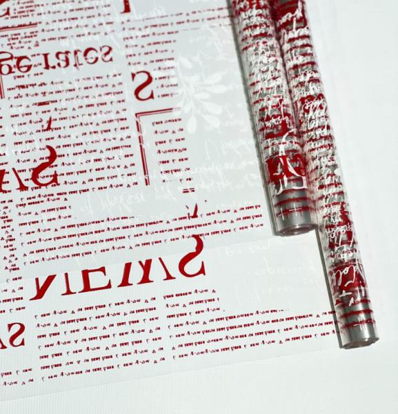 Пленка прозрачная двухцветная с рисунком Газета бело-красная 70см*10ярд ± 5%
