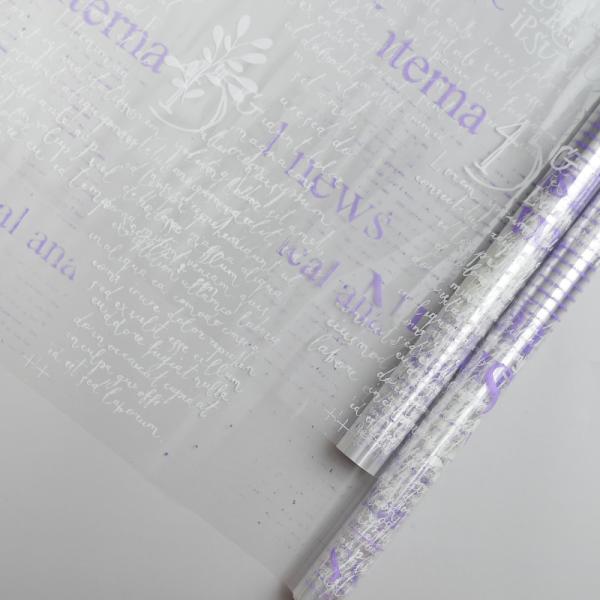 Пленка прозрачная двухцветная с рисунком Газета бело-сиреневая 70см*10ярд ± 5%