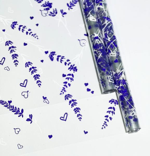 Пленка прозрачная двухцветная с рисунком Лаванда бело- сиреневая 70см*10ярд ± 5%