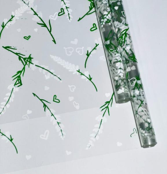 Пленка прозрачная двухцветная с рисунком Лаванда бело-зеленая 70см*10ярд ± 5%