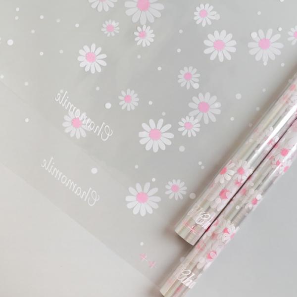 Пленка прозрачная двухцветная с рисунком Ромашка бело-розовая 70см*200гр ± 5%
