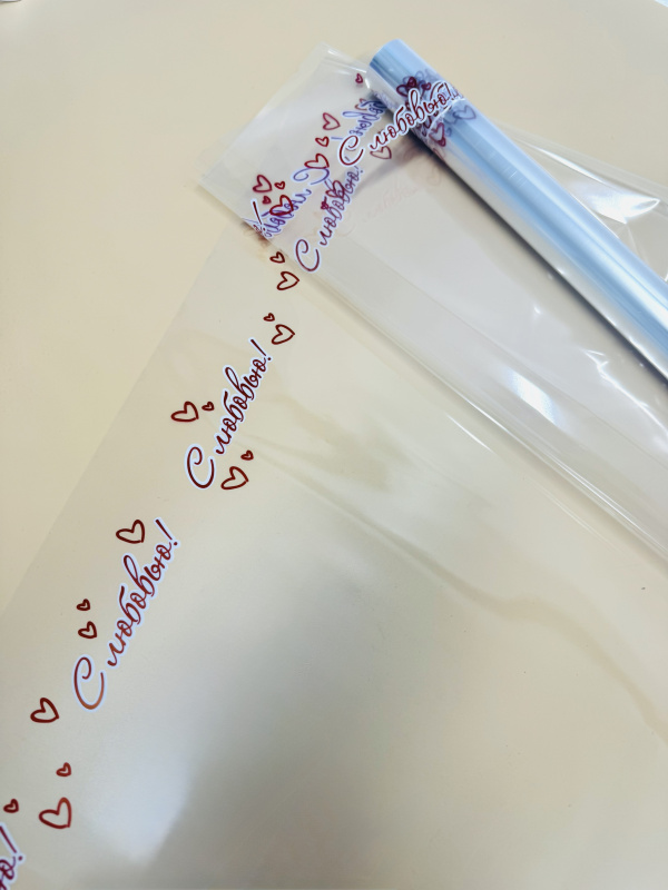 Пленка прозрачная с надписью С Любовью! 70см*400гр ± 5%