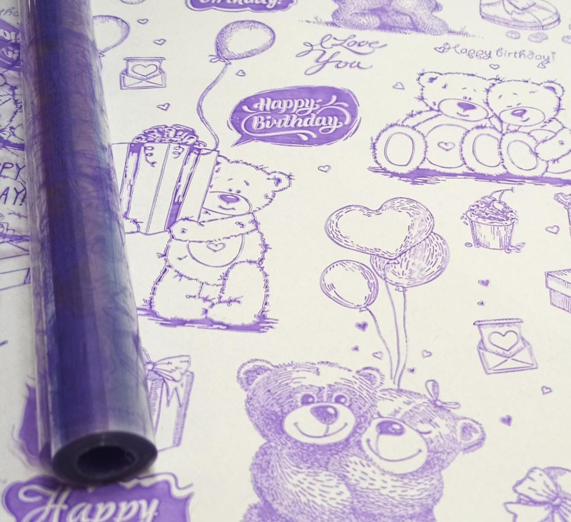 Пленка Мишки фиолетовый 70см*200гр ± 5%