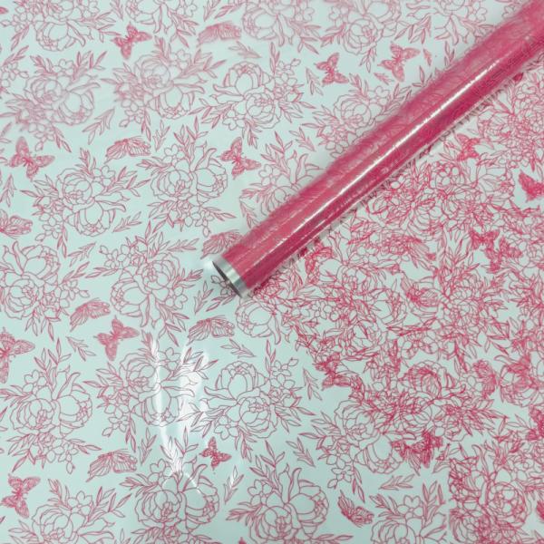 Пленка прозрачная Контурные пионы розовый 70см*200гр ± 5%