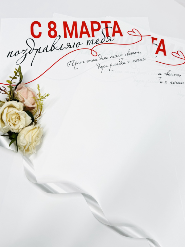 Пленка матовая С 8 марта! белый 20 листов 58*38см 65мкм