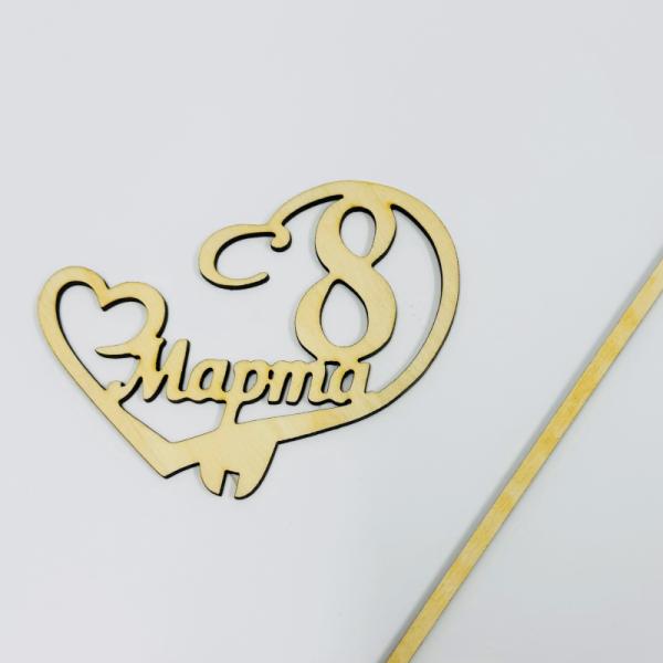 Топпер"С 8 Марта!" сердце бесцветный 10*9см
