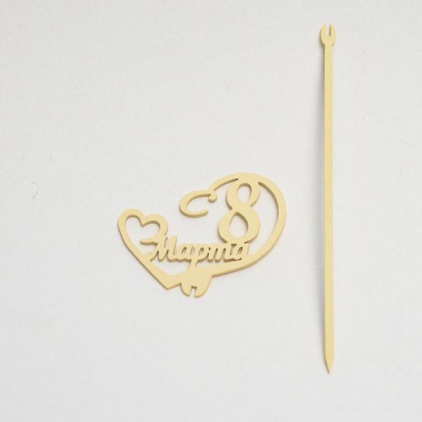 Топпер"С 8 Марта!" сердце натуральный 10*9см