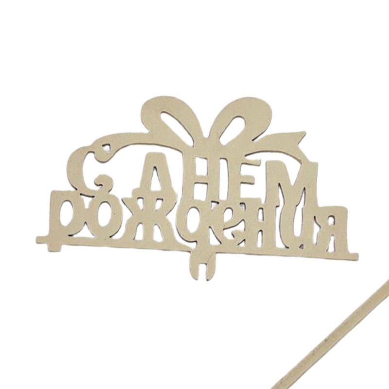 Топпер "С днем рождения" бант натуральный 12*7см