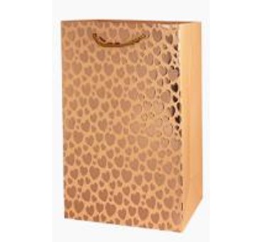 Пакет подарочный металлик "Сердечки" 32*26*12см, розовое золото