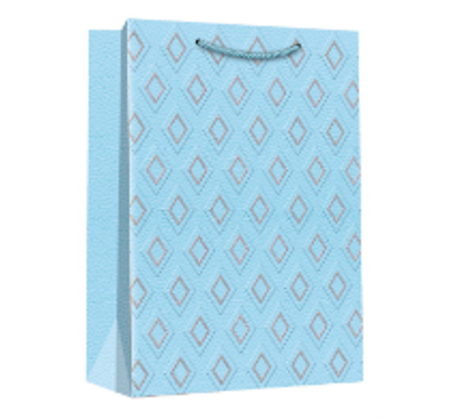 Пакет подарочный "Серебрянные ромбы", 32*26*12см, голубой