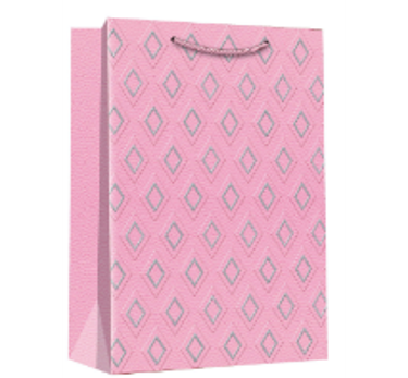 Пакет подарочный "Серебрянные ромбы", 32*26*12см, розовый