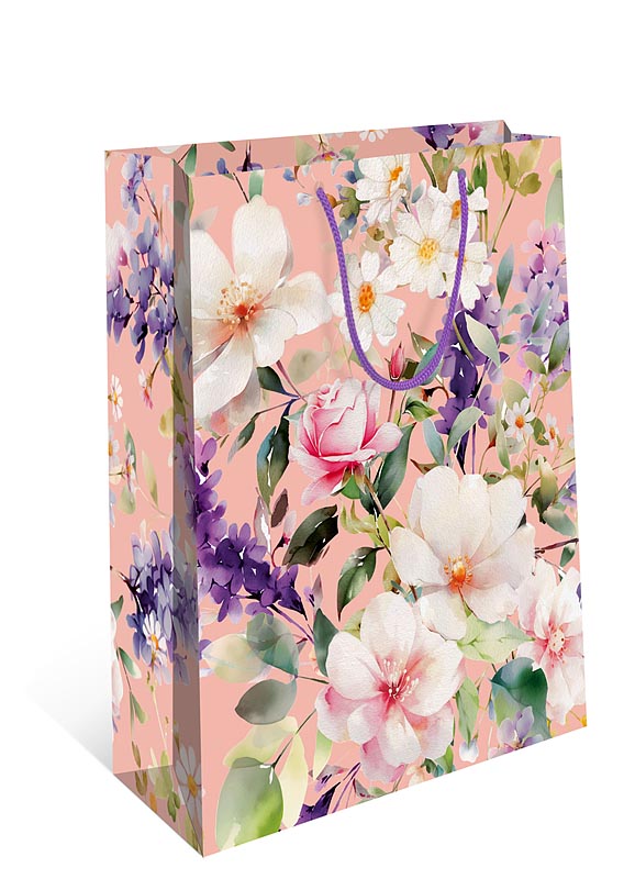 Пакет подарочный "Цветочная акварель 1" 32*26*12см