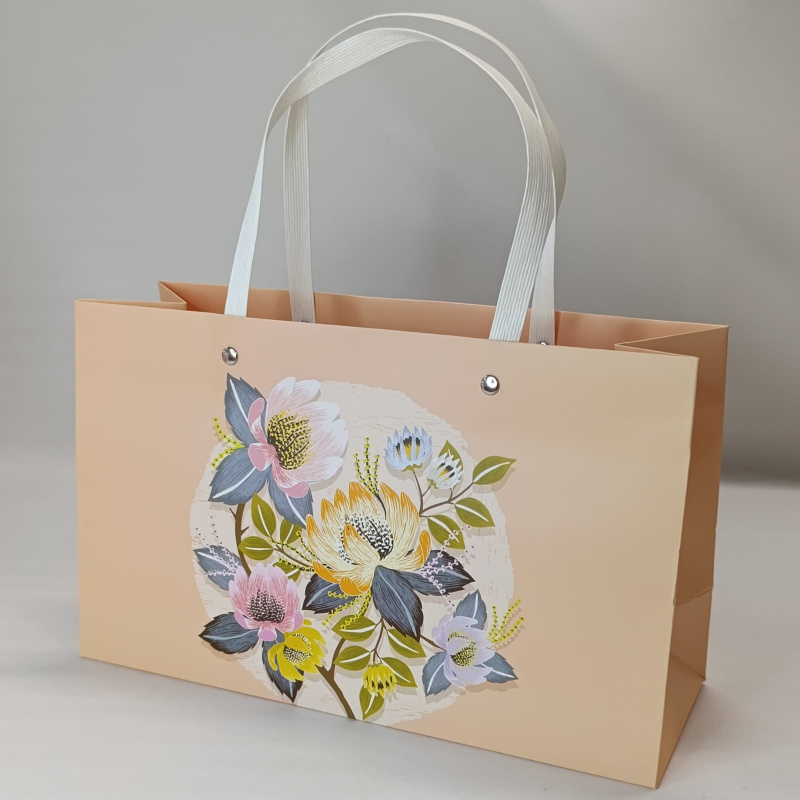 Пакет подарочный "Флора", 28*17*10см, персиковый